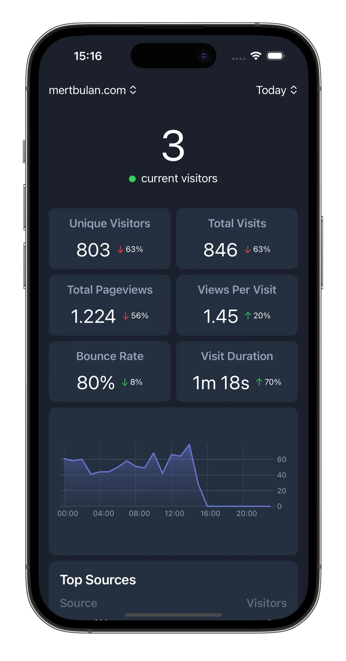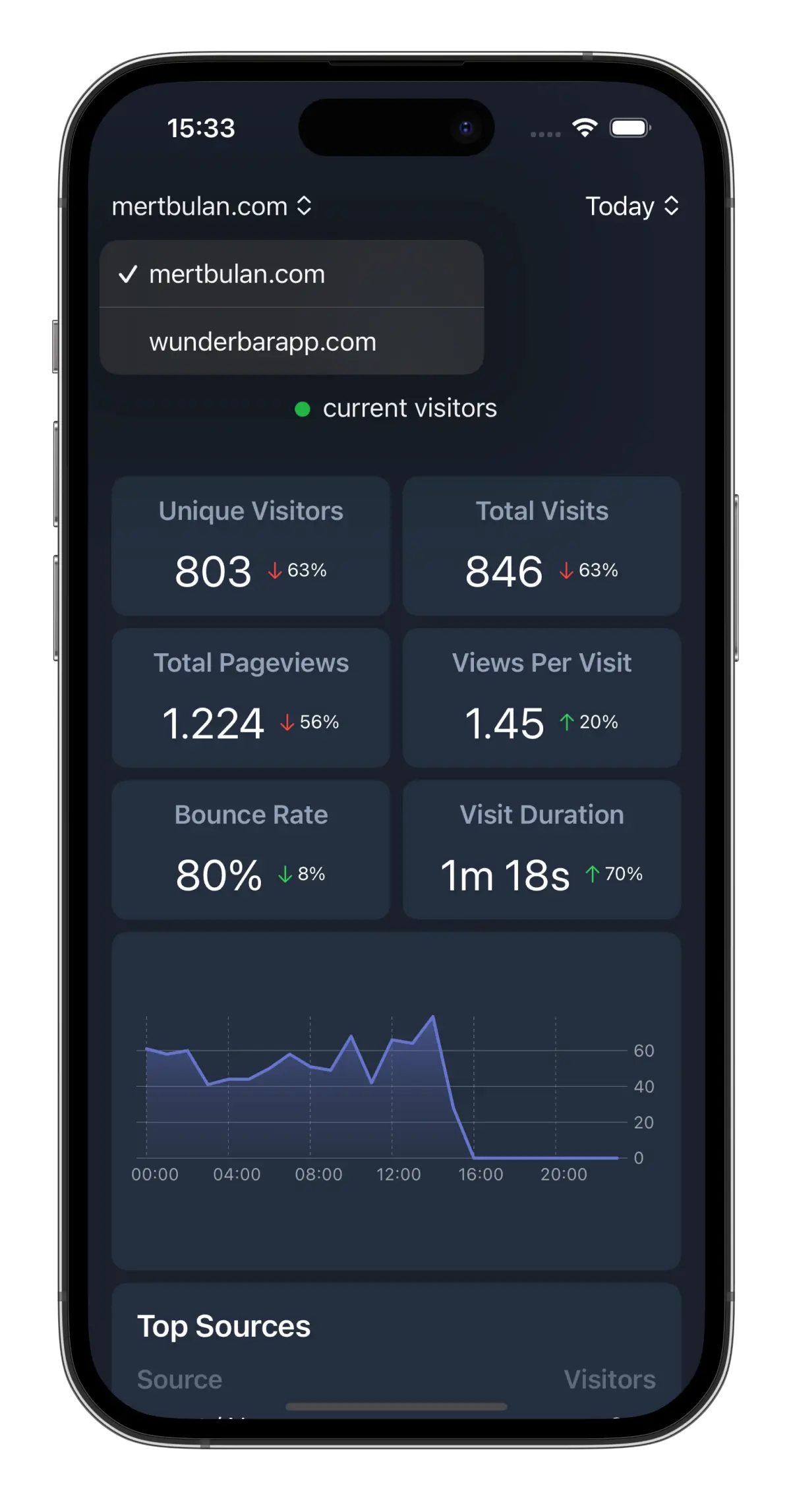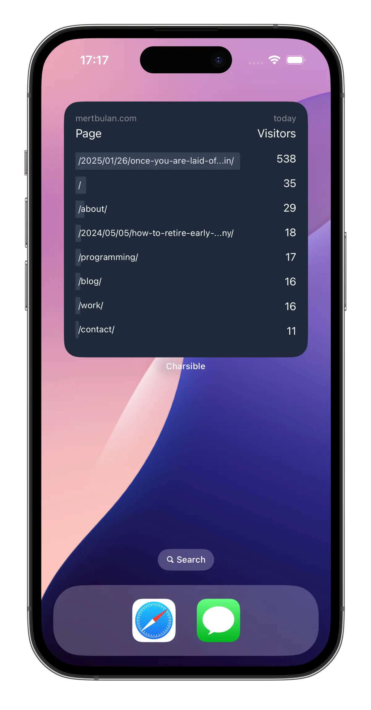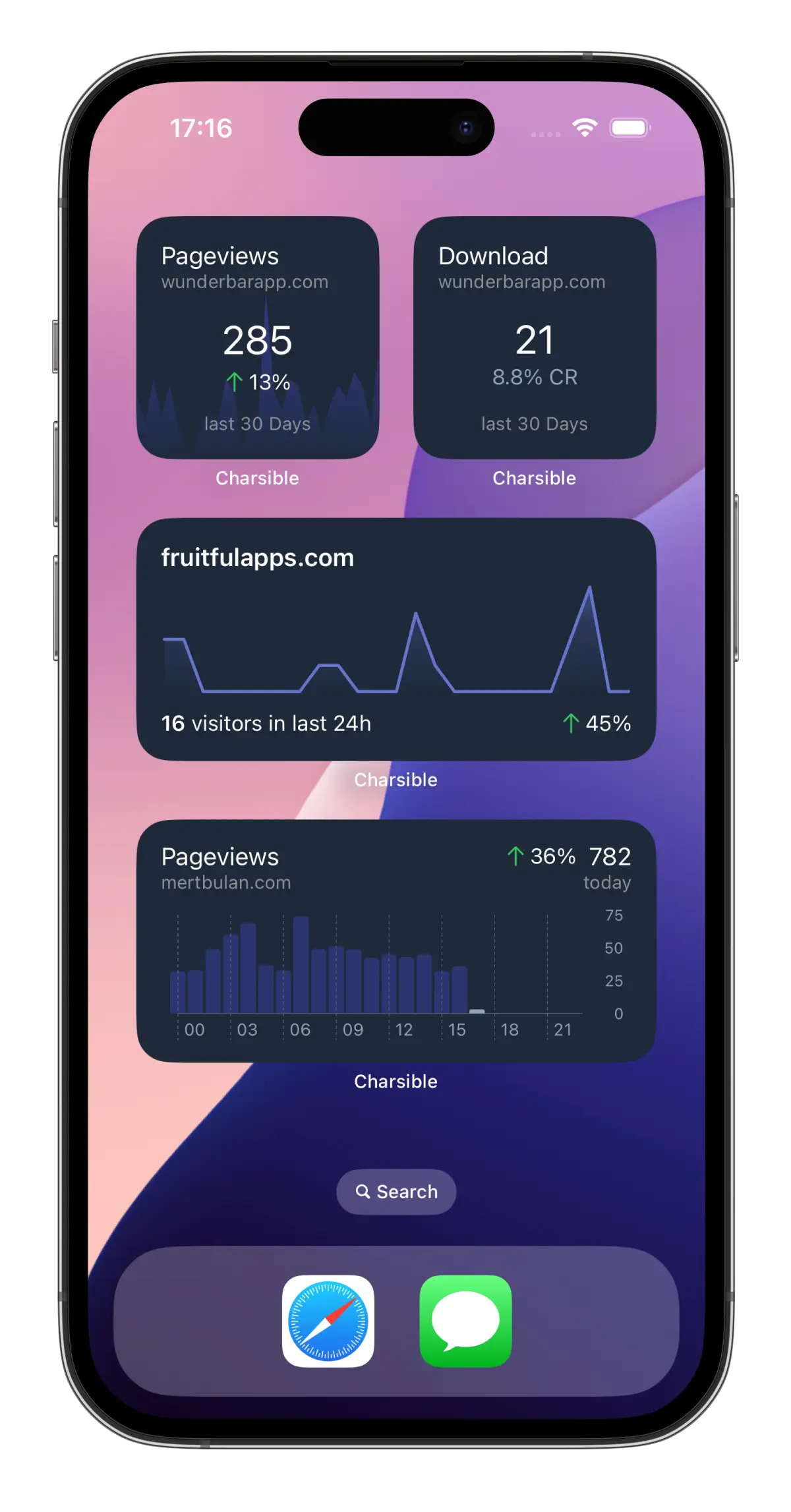 Four widgets in different sizes for different metrics (visitors, pageviews, visits, goal conversions)